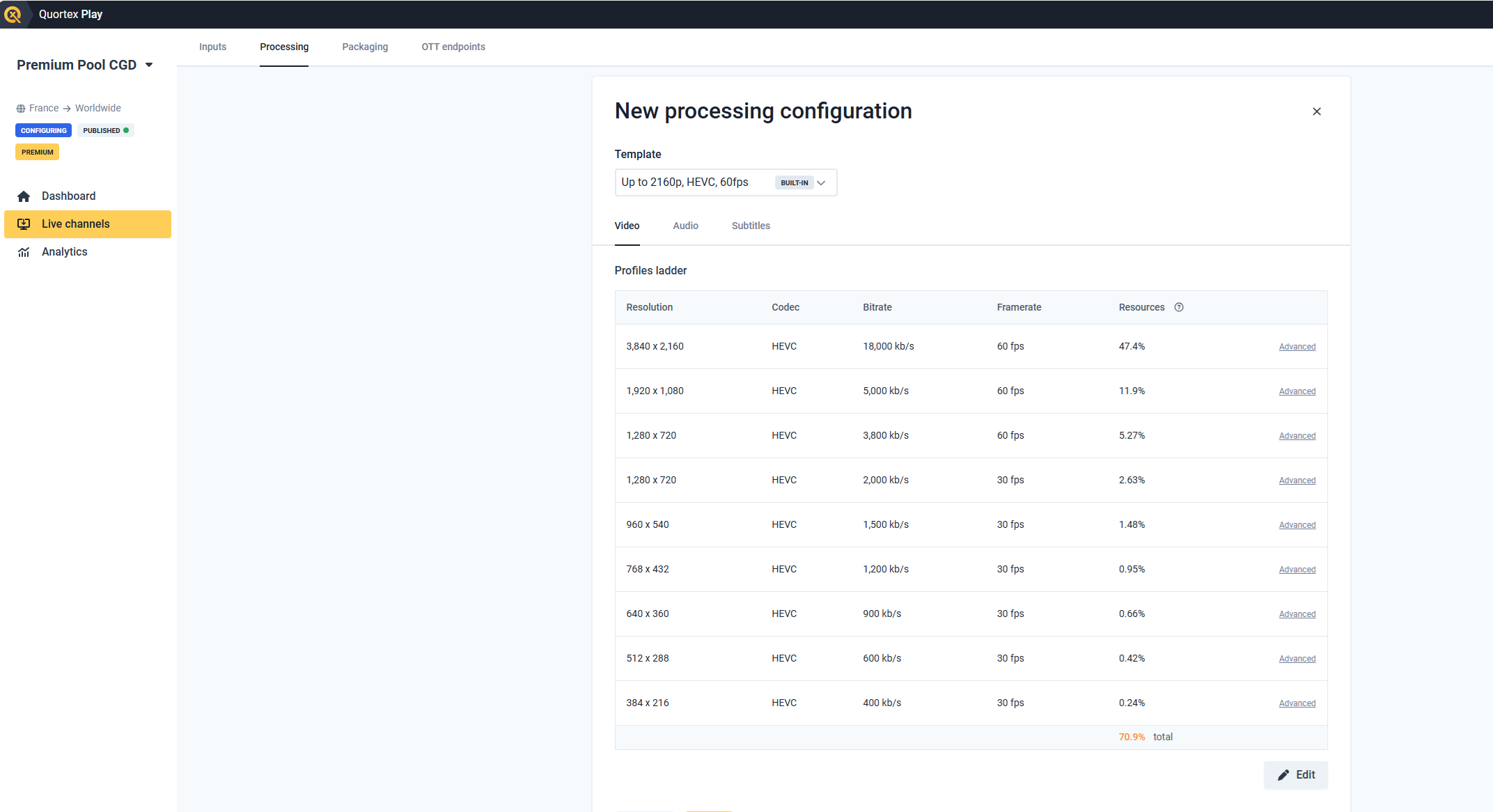 Activate Premium processing for UHD, HEVC, and Low Latency use cases!